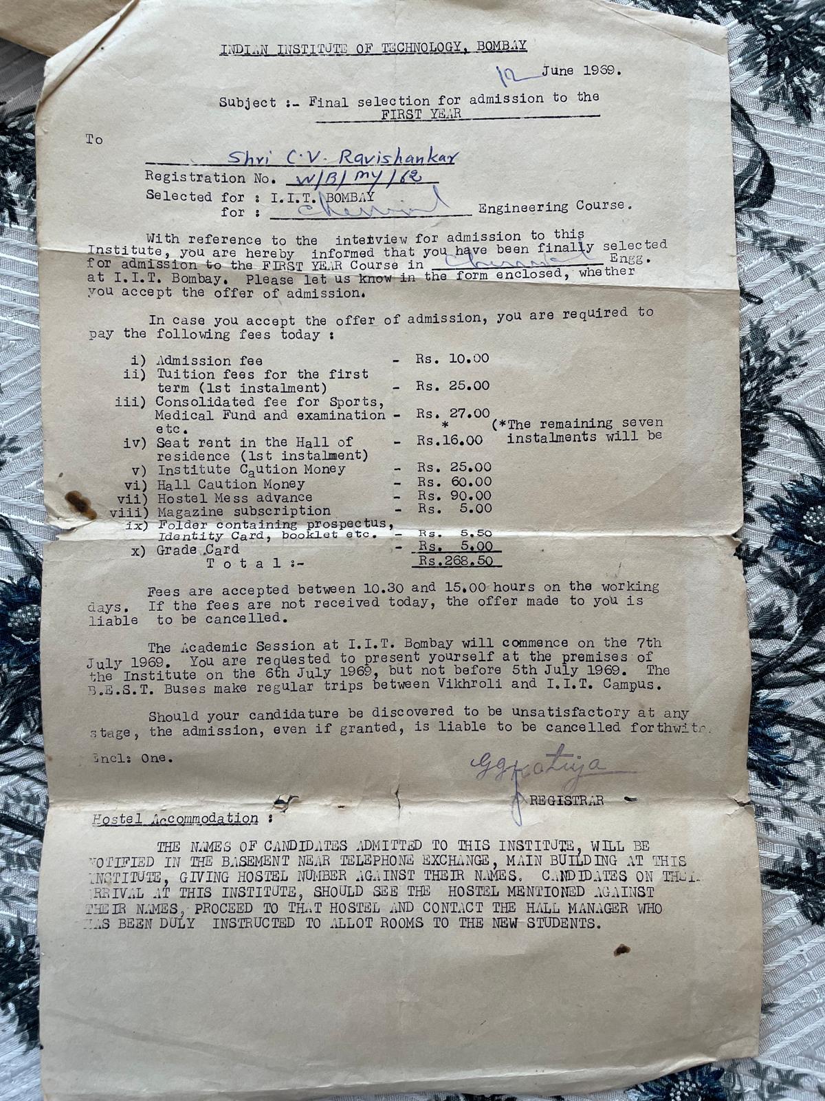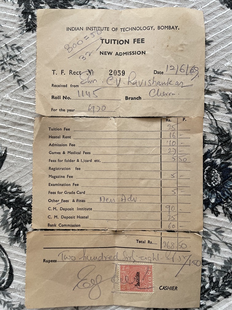 I showed up at IIT on June 12, 1969, the date of the IIT entrance “interview”, thinking this was to be an actual interview, and that I’d be able to discuss matters, get information, and make an informed choice about my major. Instead, when I was called in, the person “interviewing” me (N.R. Kamath, I suspect it was, in retrospect) merely asked “What department do you want?” Apparently, I had the full range of choices available. Assuming he was going to advise me, I said “I was considering Electrical, Chemical, or Mechanical. I’m not sure. What do you think of Chemical?”