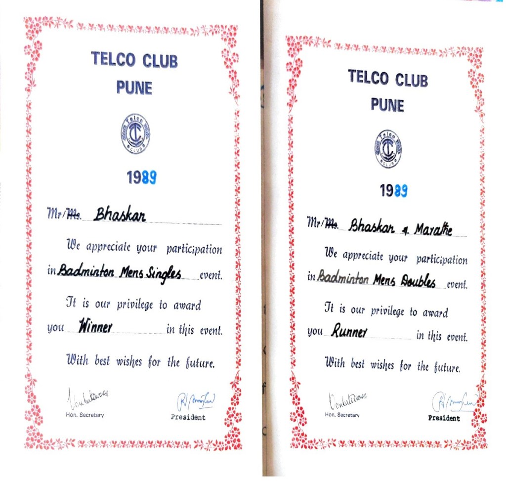 I continued playing badminton at Telco for a while. However, in a few years my heavy smoking affected my breathing and stamina, and I had to stop playing. Badminton is a wonderful, wonderful game and I still watch matches on TV and sometimes share significant badminton news with Ramesh.